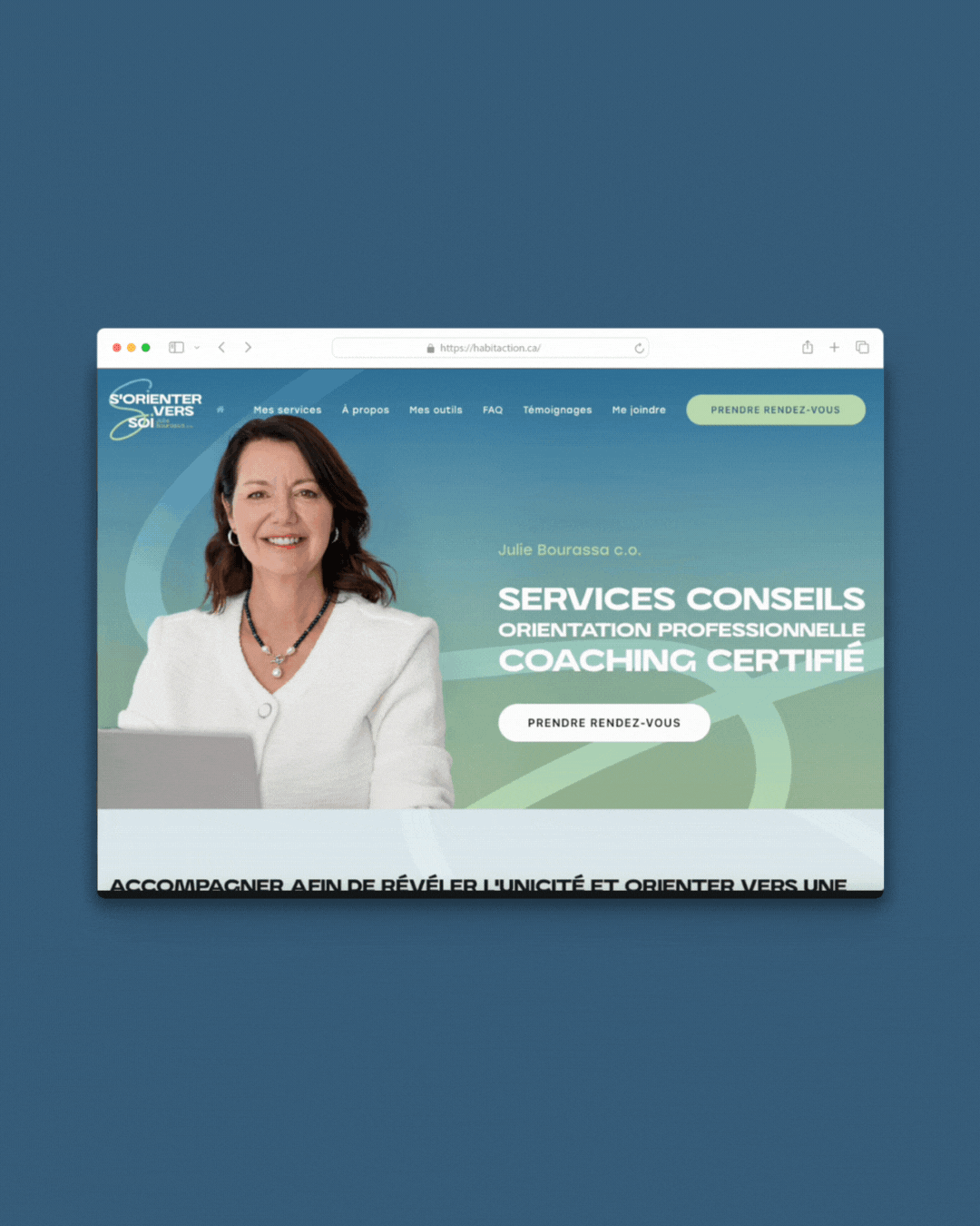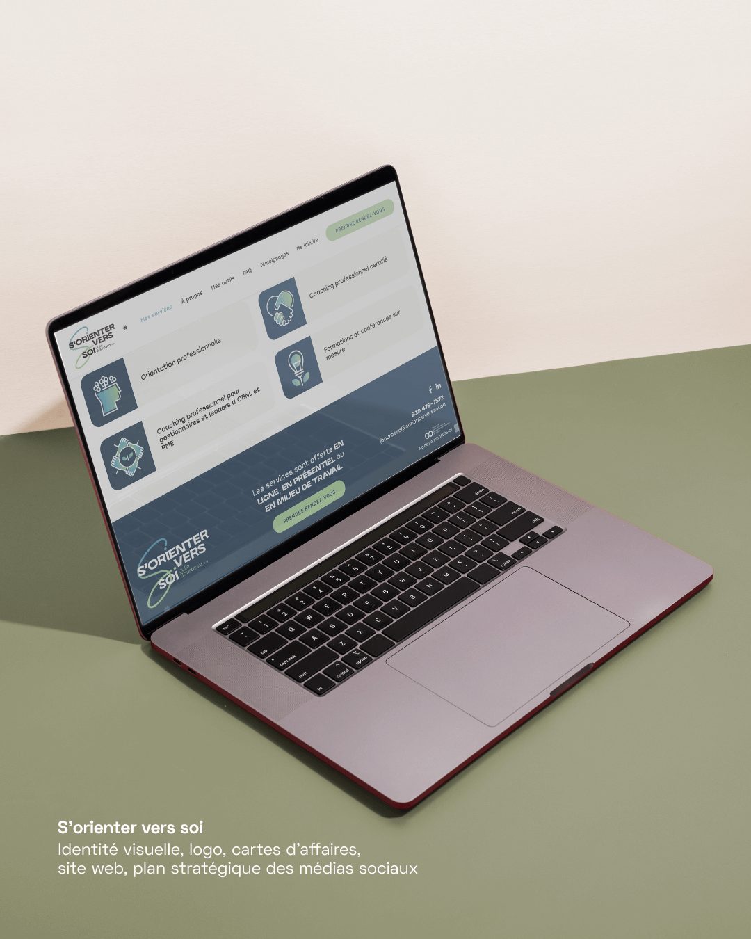 Notre mandat : développer une identité visuelle de A à Z, concevoir un site web à son image, produire l’ensemble du matériel graphique et marketing, et mettre de l’avant une stratégie de présence sur les médias sociaux.